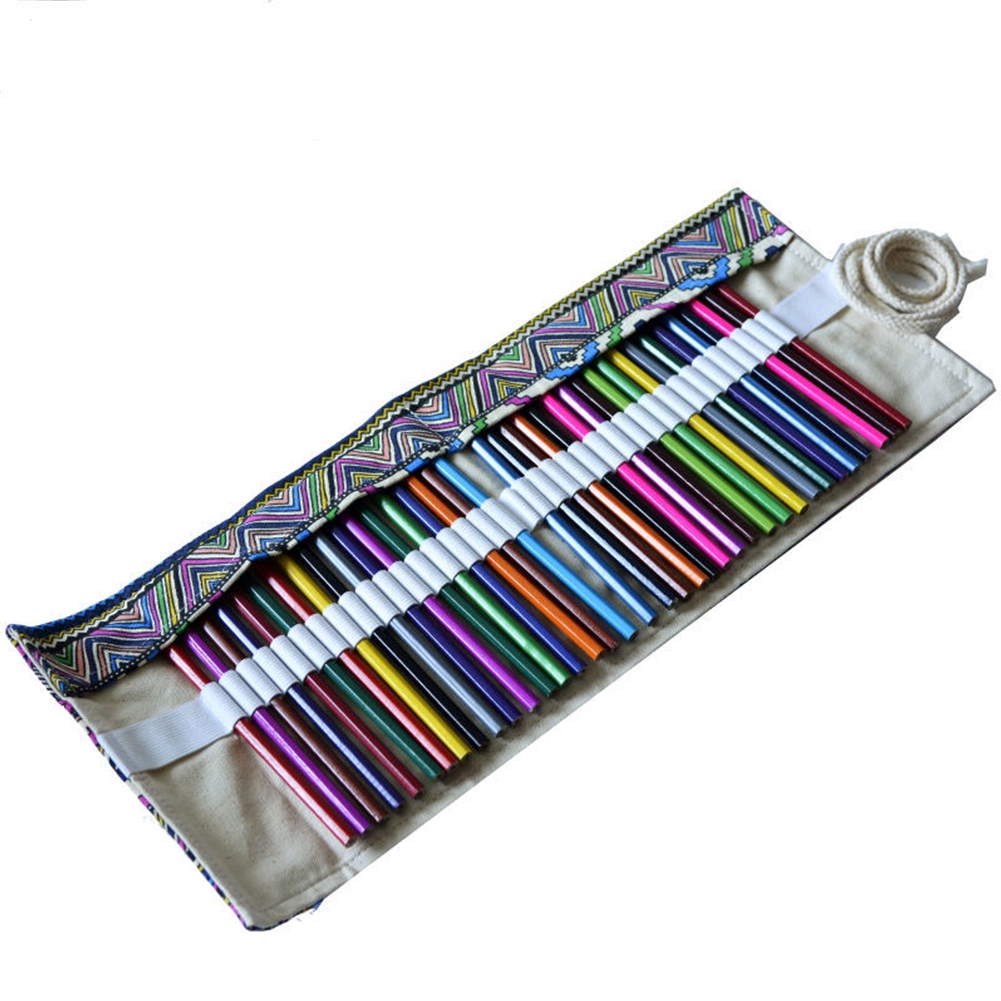 Retro Canvas Makeup Office School Bag 36 72 Holes Artists Pencil
