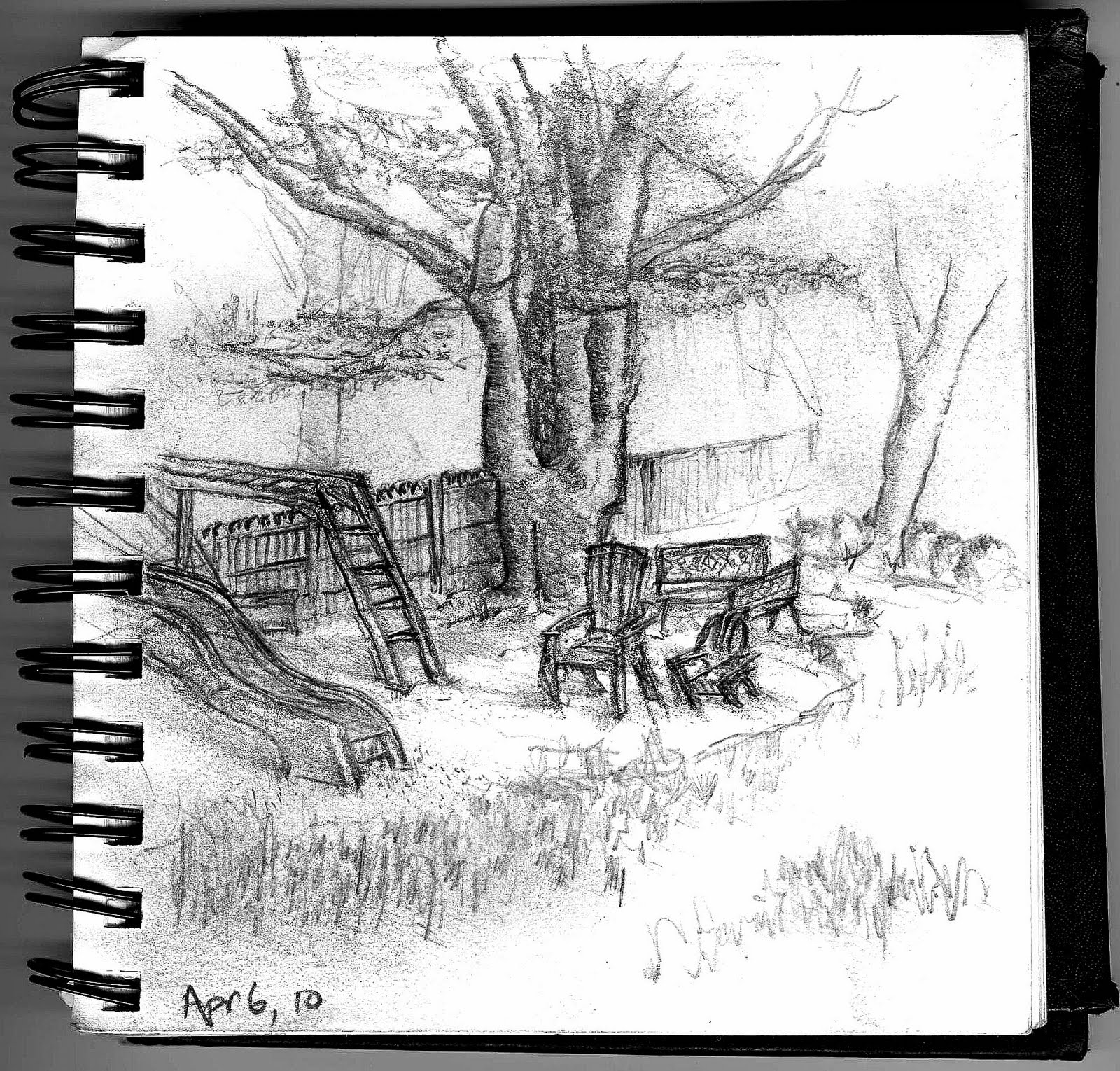 Pencil Perspective Drawing Of Garden Stock Illustration