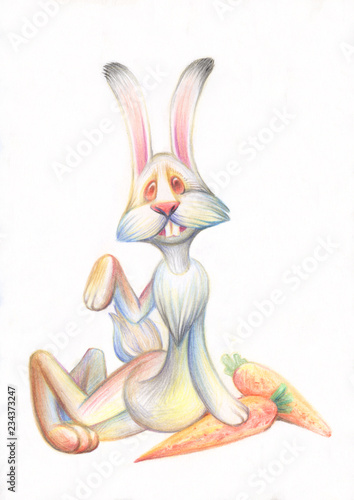 Artwork Alinate Little Bunny Drawn With Colored Pencil