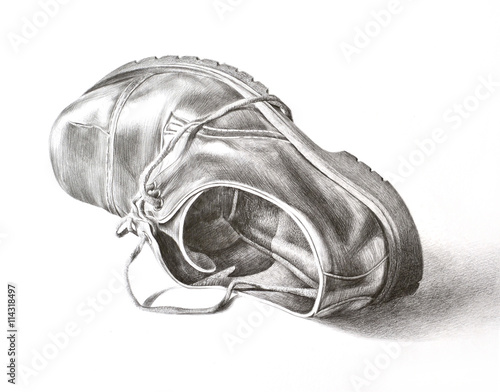 Shoe Realistic Hand Drawing With Pencil On Paper Buy This Stock