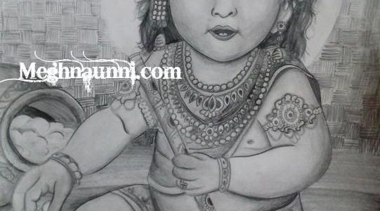 A Pencil Sketch Of Little Krishna Pencil Drawing Pictures