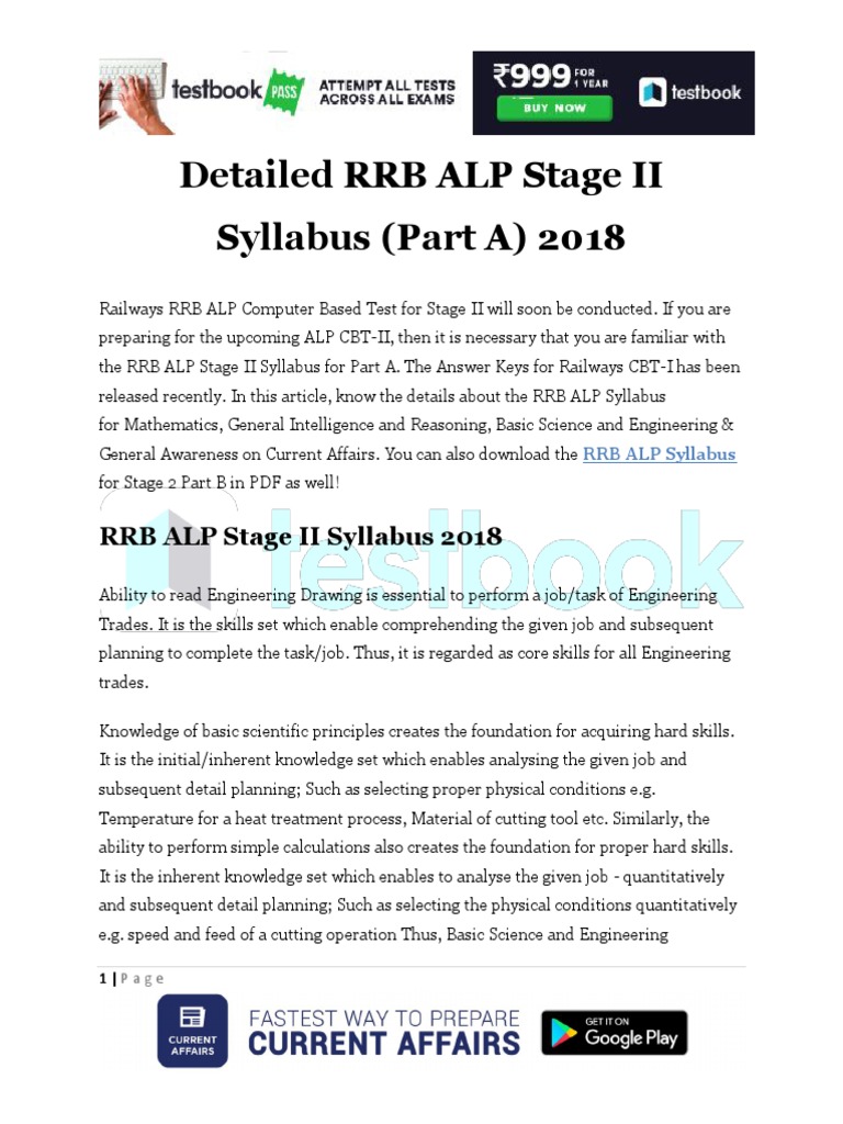 Detailed Rrb Alp Stage Ii Syllabus Part A 2018 Download As Pdf