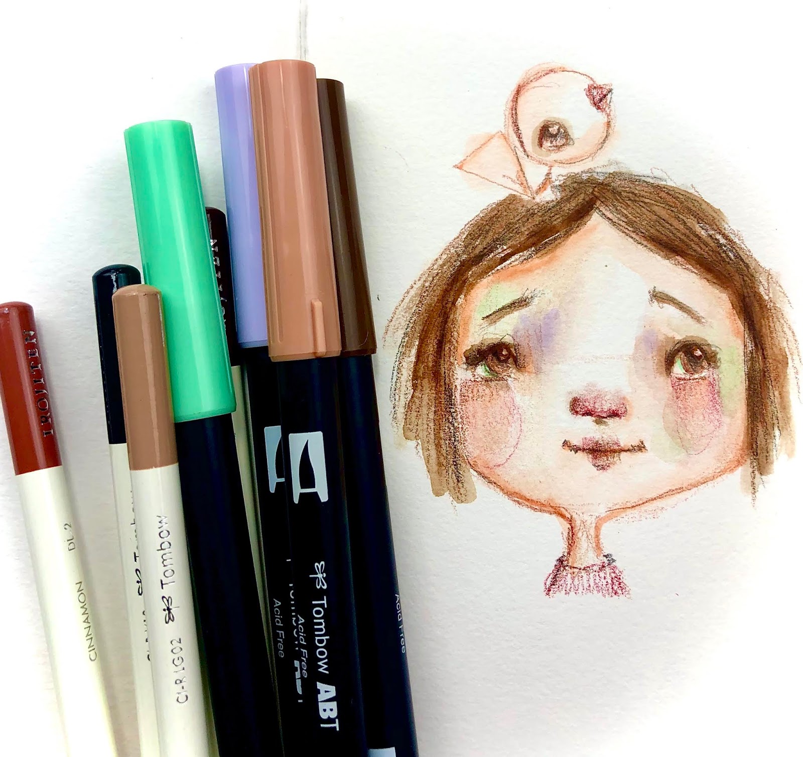 Mindy Lacefield Drawing A Girl With Tombow Markers And Pencils