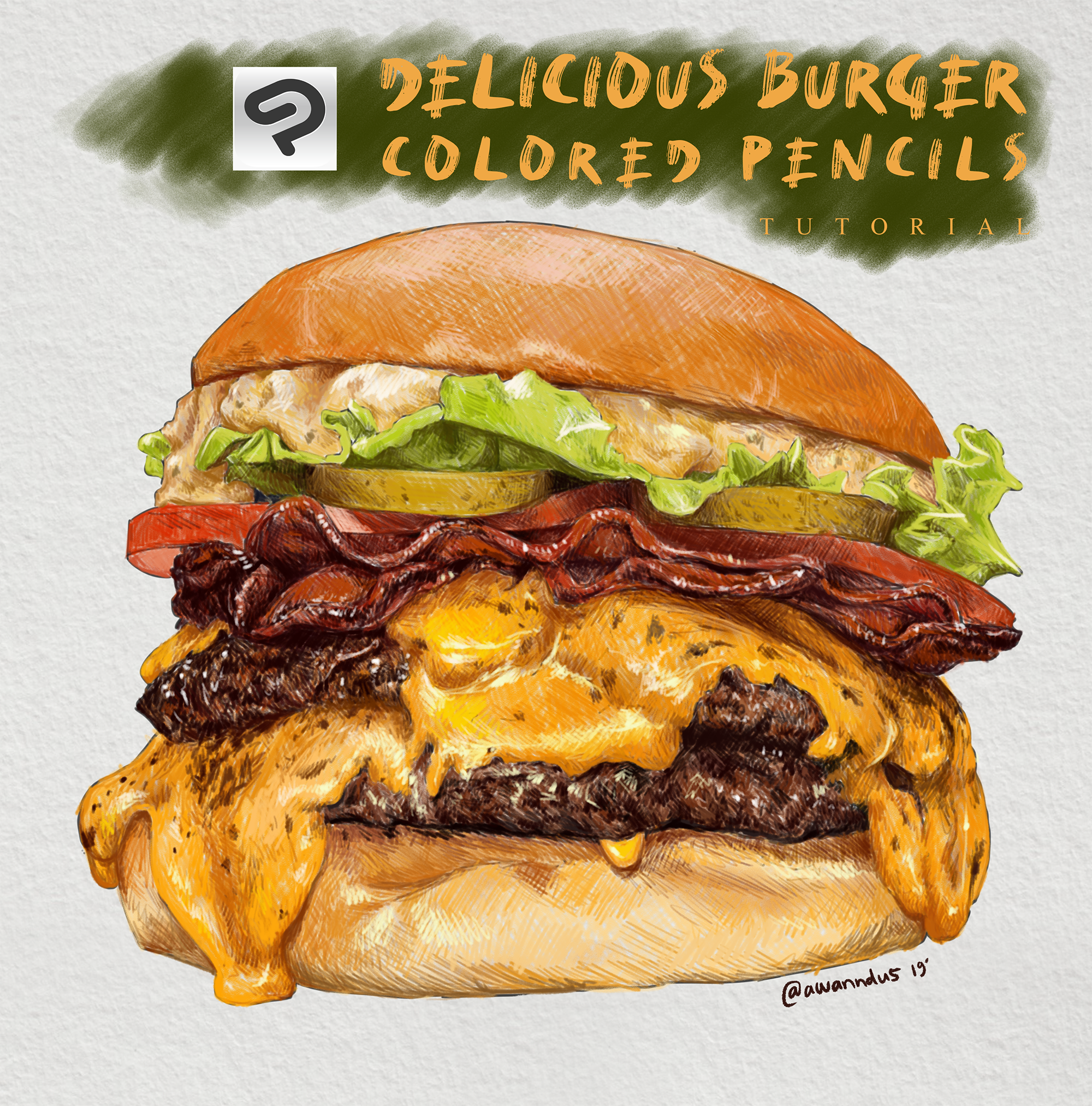 Delicious Burger Colored Pencils Tutorial Traditional Style 2