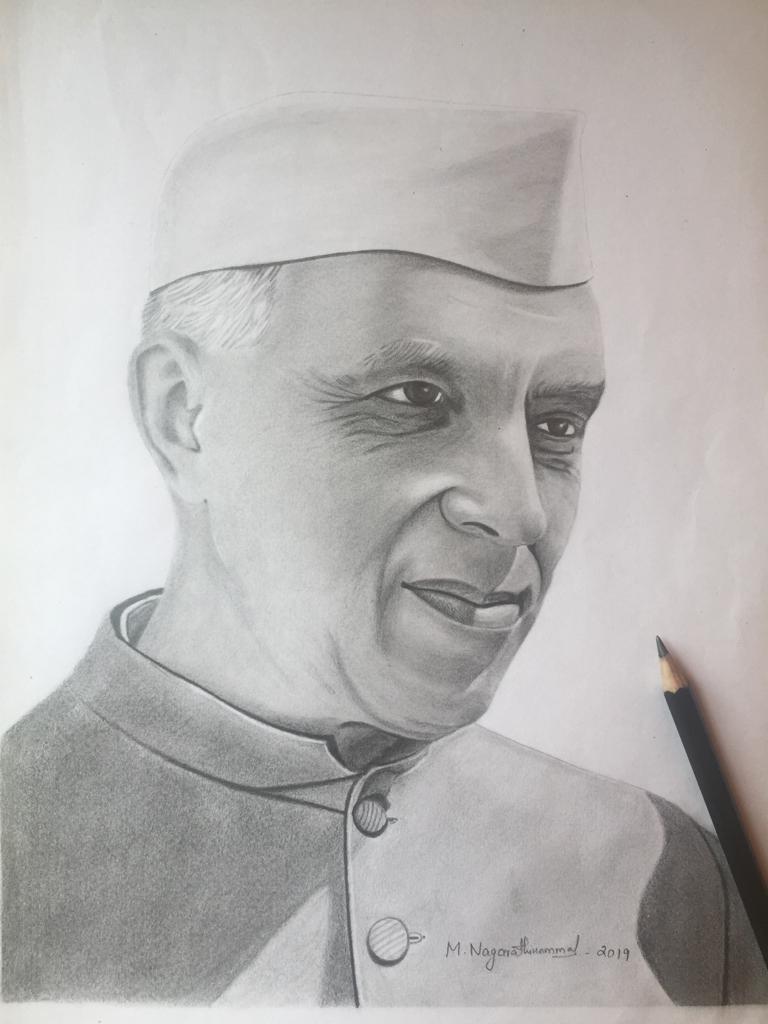 Great Pencil Sketch Of Pandir Jawaharlal Nehru Ji Desipainters Com