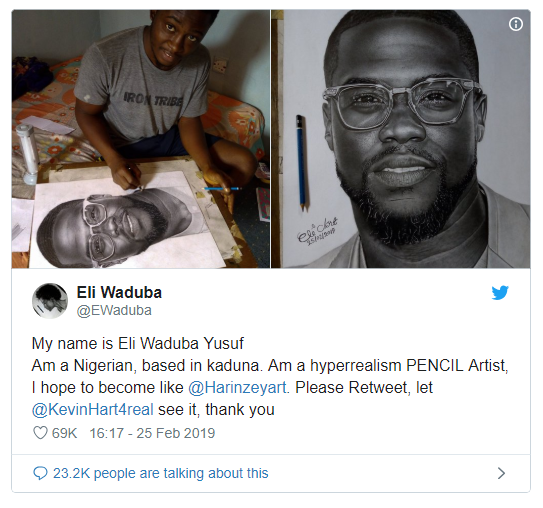 Kevin Hart Supports A Talented Nigerian Pencil Artist Eli Waduba