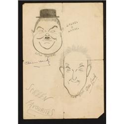 Stan Laurel And Oliver Hardy Autographed Sketch This 11 X 9 5