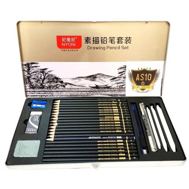 Pensil Set Drawing Nyoni 29pcs Tin Case Shopee Indonesia