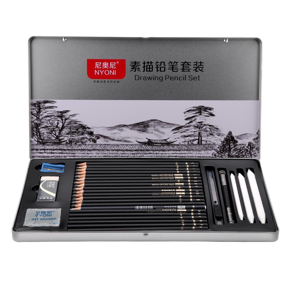 Nyoni 29pcs Sketch Pencil Set 2h H Hb 2b 4b 6b 8b 12b 14b Charcoal