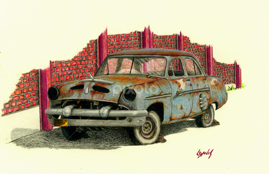 Artstation How To Draw An Old Car Cuba With Pencil Photoshop Drawing Ermir Kolonja
