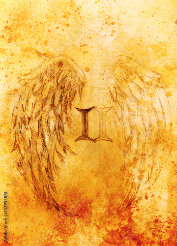 Pencil Drawing On Old Paper Angel Wings Color Spots On