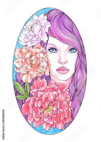 Sketch Of The Woman With Flowers Vector Fashion Illustration Of Beautiful Woman Pencil Drawing Beauty Floral Portrait Of