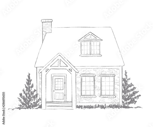 Pencil Sketch Of The House Drawn Illustration Stock Photo