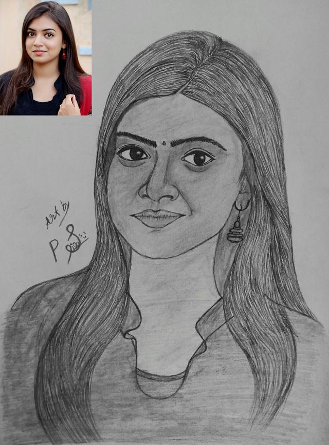 Paintings Of Vishnu Aranmula Actress Nazriya Nazim Pencil Drawing