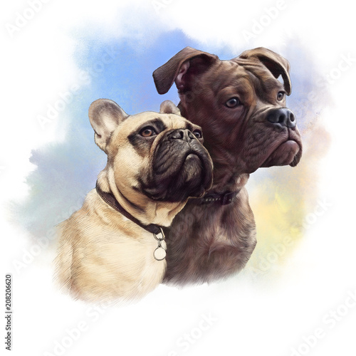 Cute French Bulldogs Realistic Drawing Of Two Boxer Dogs On