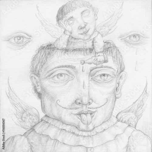 Art Devil And Angel Wedding Skulls Hand Pencil Drawing On Paper
