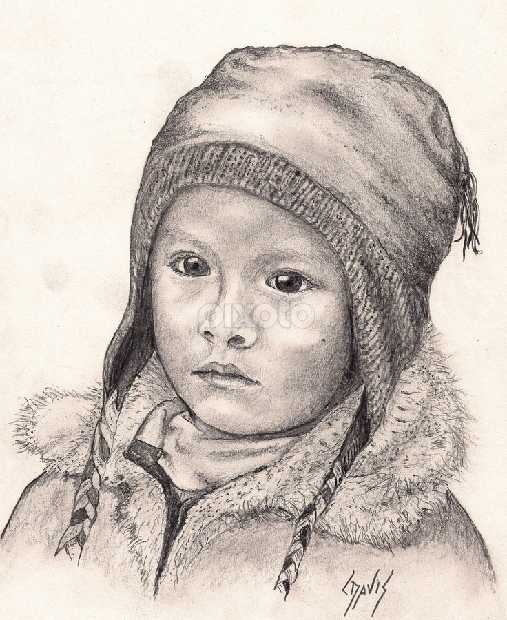 Pencil Sketch Of A Little Girl In A Hat Stock Photo Picture And