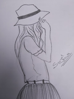 Cute Pencil Sketch Of Girl With Hat