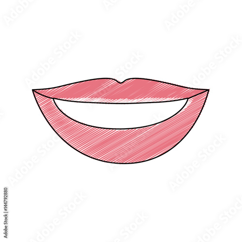Color Pencil Drawing Of Lips With Teeths Vector Illustration Buy