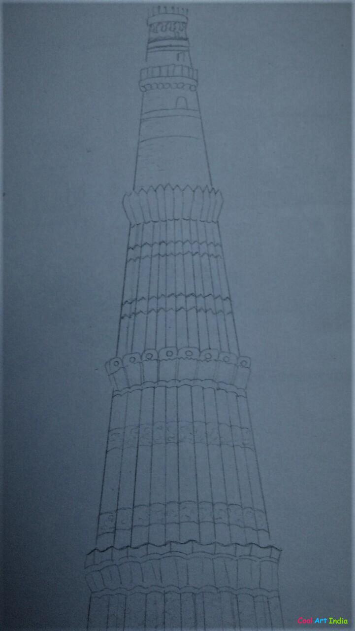 How To Draw Qutub Minar On Paper For Beginners Qutub Minar