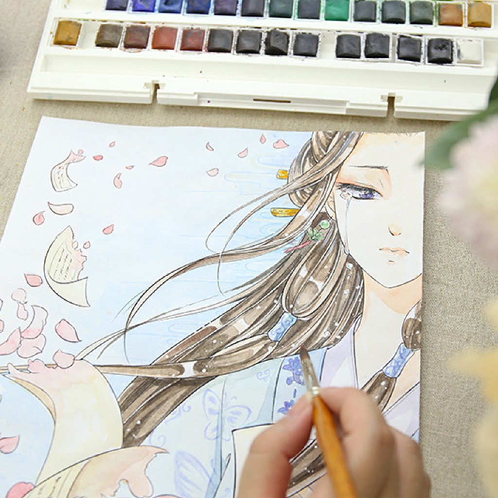 Watercolor Drawing Painting Girl Student Writing Stock