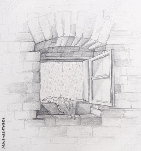 Rainy Weather Open Window Pencil Drawing Buy This Stock
