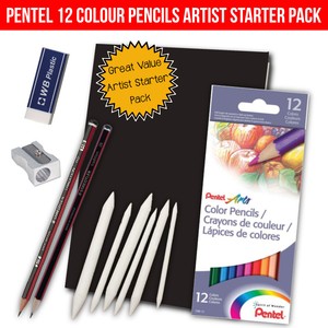 Pentel 12 Colour Pencils Drawing Art Starter Kit Sketchbook
