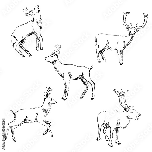 Eps Illustration Deer Sketch Pencil Drawing By Hand Vector