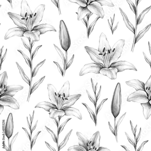 Seamless Pattern With Pencil Drawings Of Lily Flowers Buy This