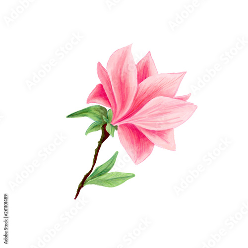Watercolor And Colored Pencil Drawing Of A Magnolia Soulangeana