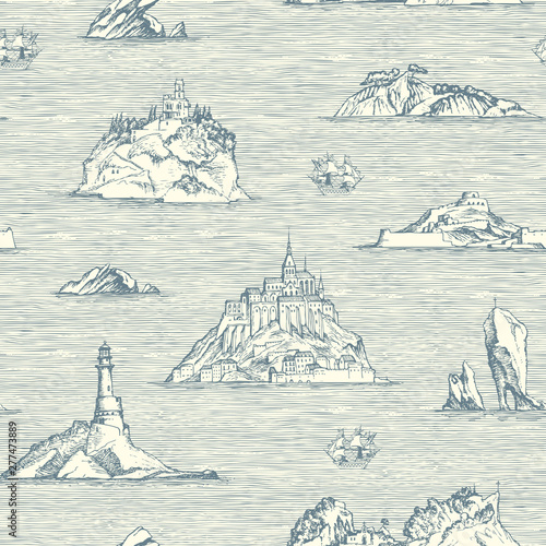 Vector Set Of Island Sketches Isolated On Beige Background In