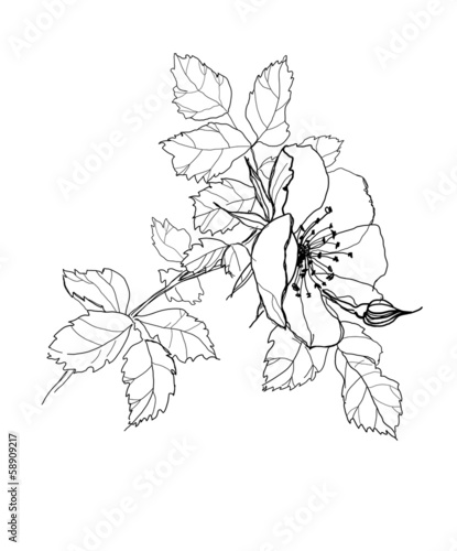 Pencil drawn rose flower.