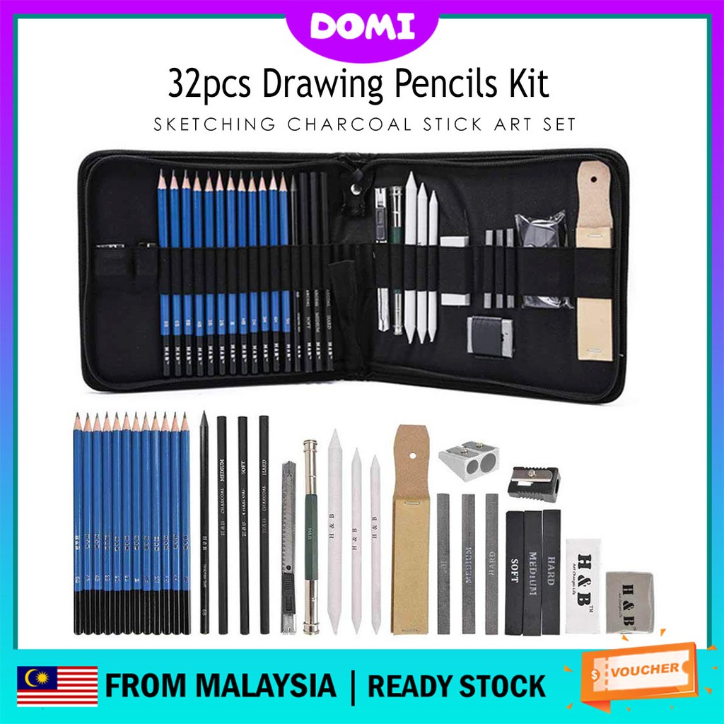 Domi 32pcs Drawing Pencils Sketching Supplies Art Kit Charcoal