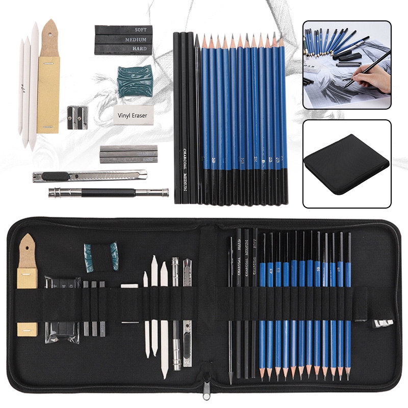 Qoo10 Wholesale 33pcs Pro Sketching Drawing Pencils Kit Carry