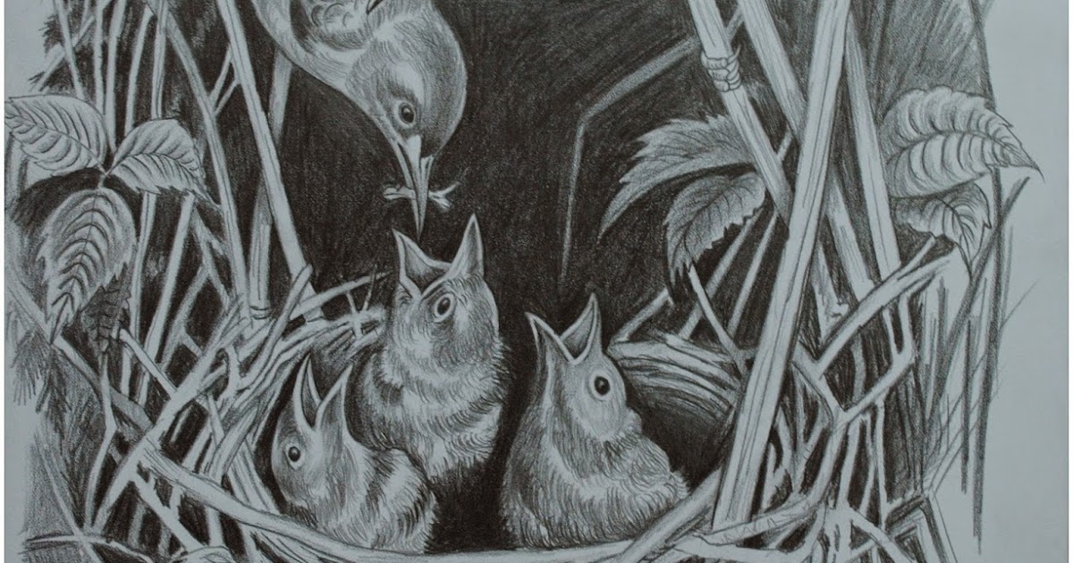 Ska Fine Arts Realistic Pencil Drawing Birds In Nest