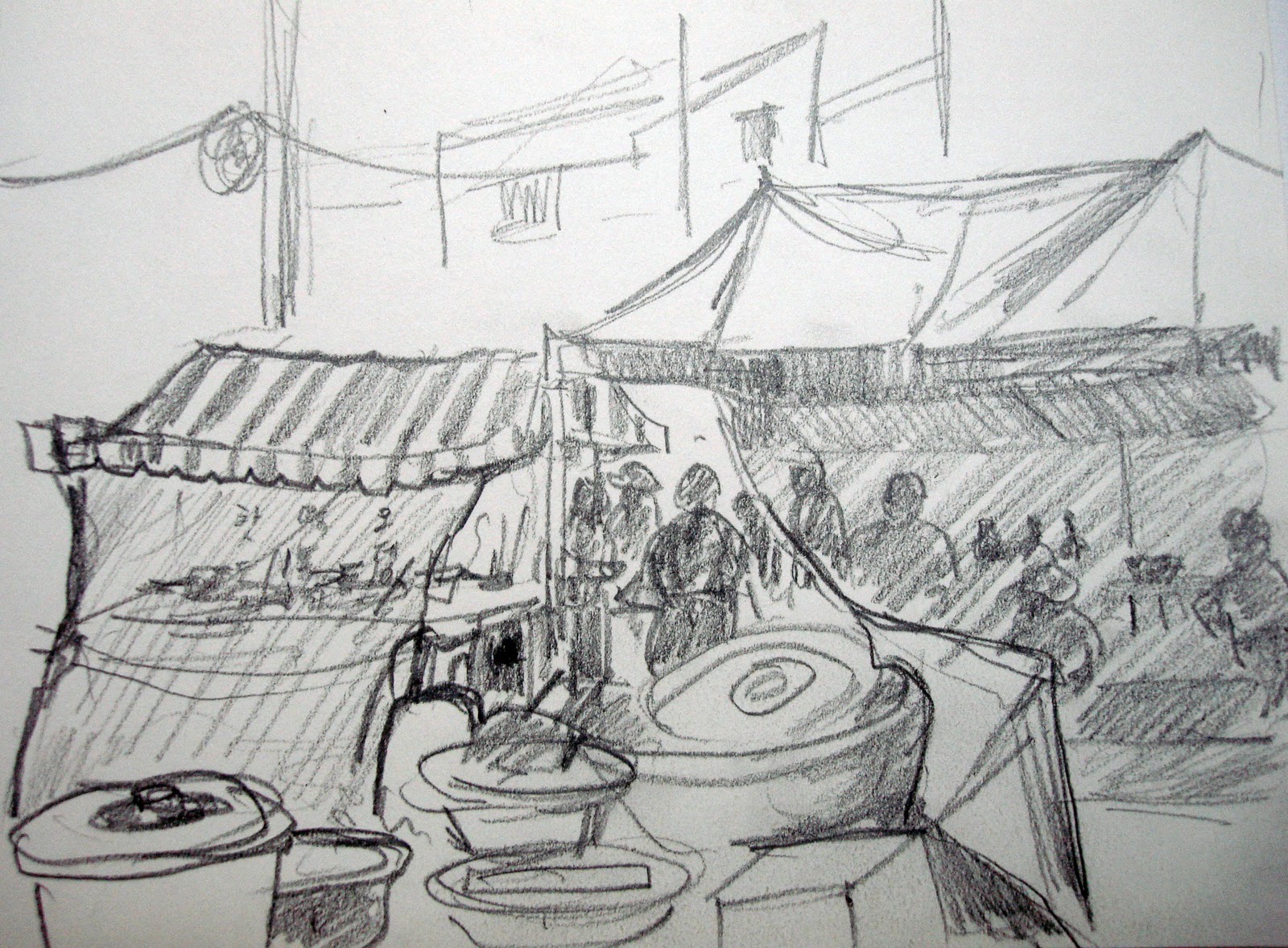 A Pencil Sketch Market By Grace Golden 15 Cm