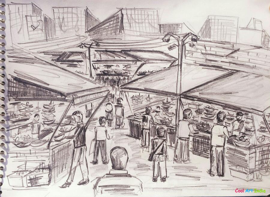 From Market From Market Charcoal Pencil Sketch A3 Sheet Flickr