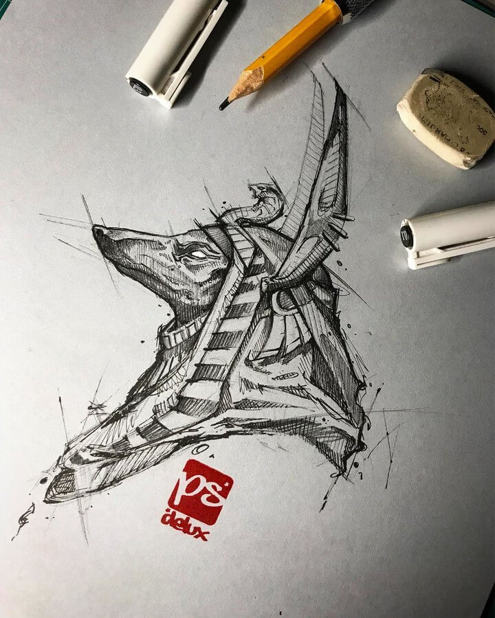 Anubis Sketch Psdelux Art Print By Psdelux Redbubble