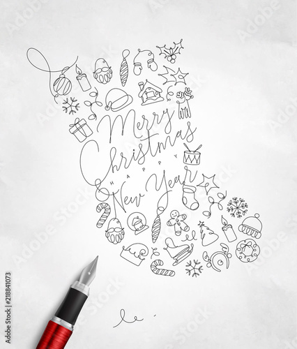 Pen Line Drawing Christmas Tree Toy Socks Buy This Stock Vector