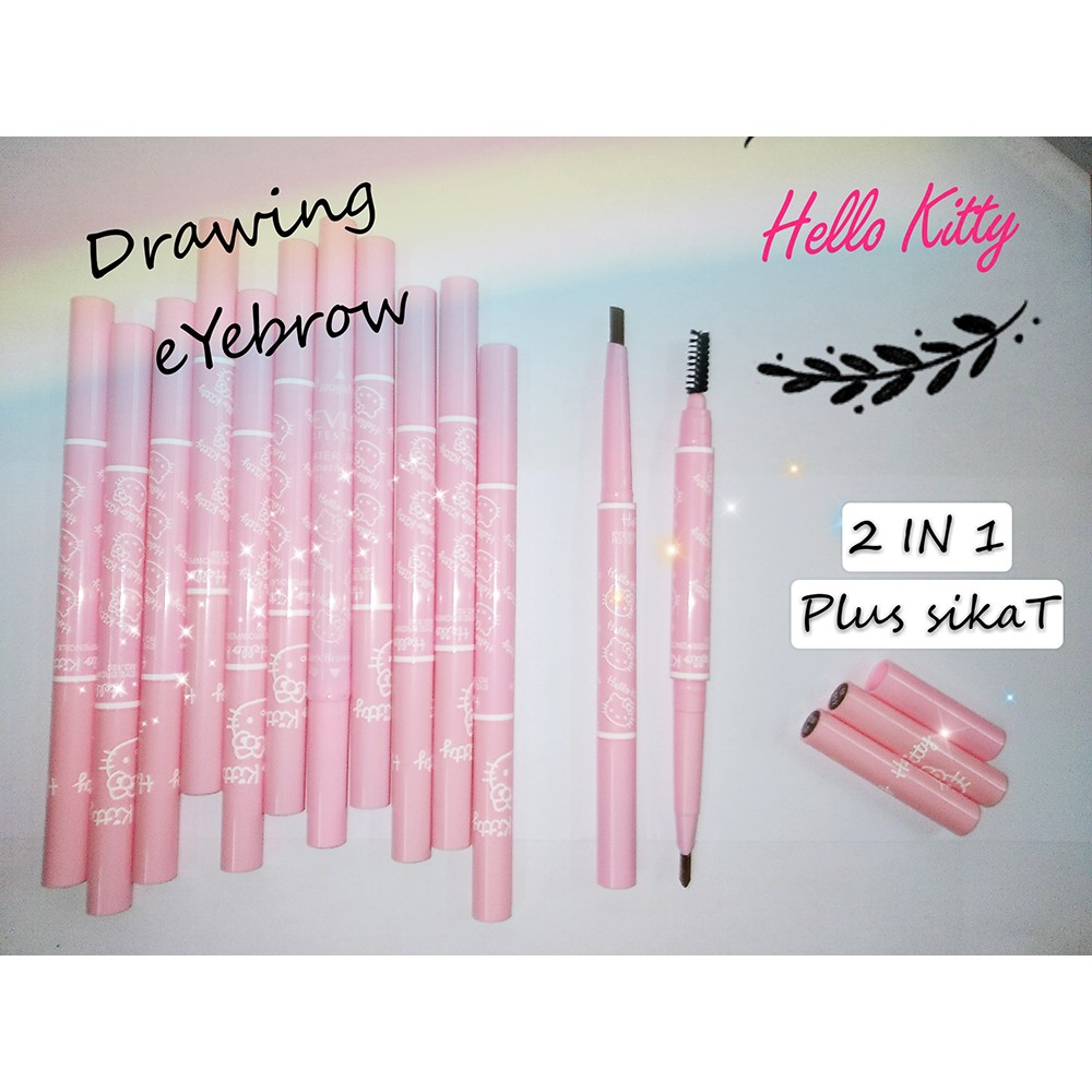 3 Pcs Revlon Drawing Eyebrow 2 In 1 Sikat Casing Hello Kitty Pink