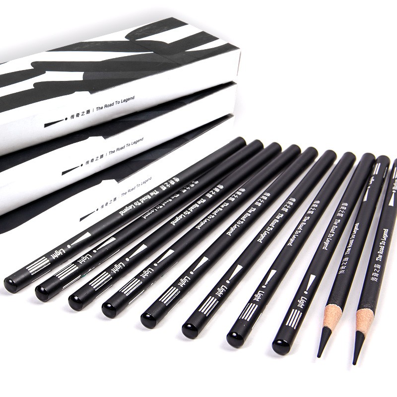 Black Silver Charcoal Sketch Pencil Drawing Pen Set Sketch Art