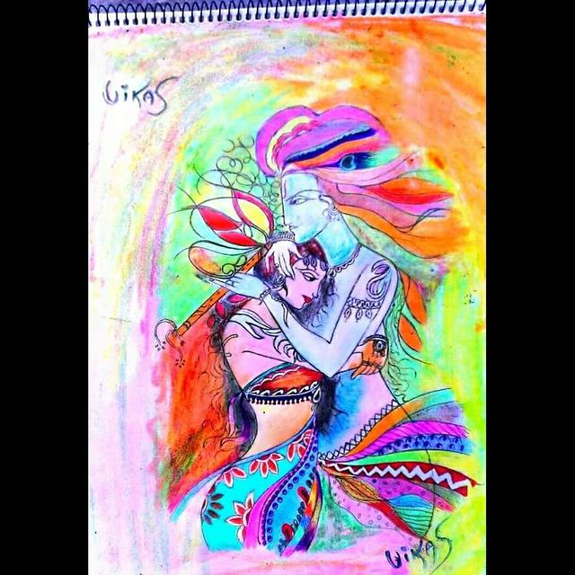 Art New Drwaing Work Pastel Colour Work Radha Krishna Hope U