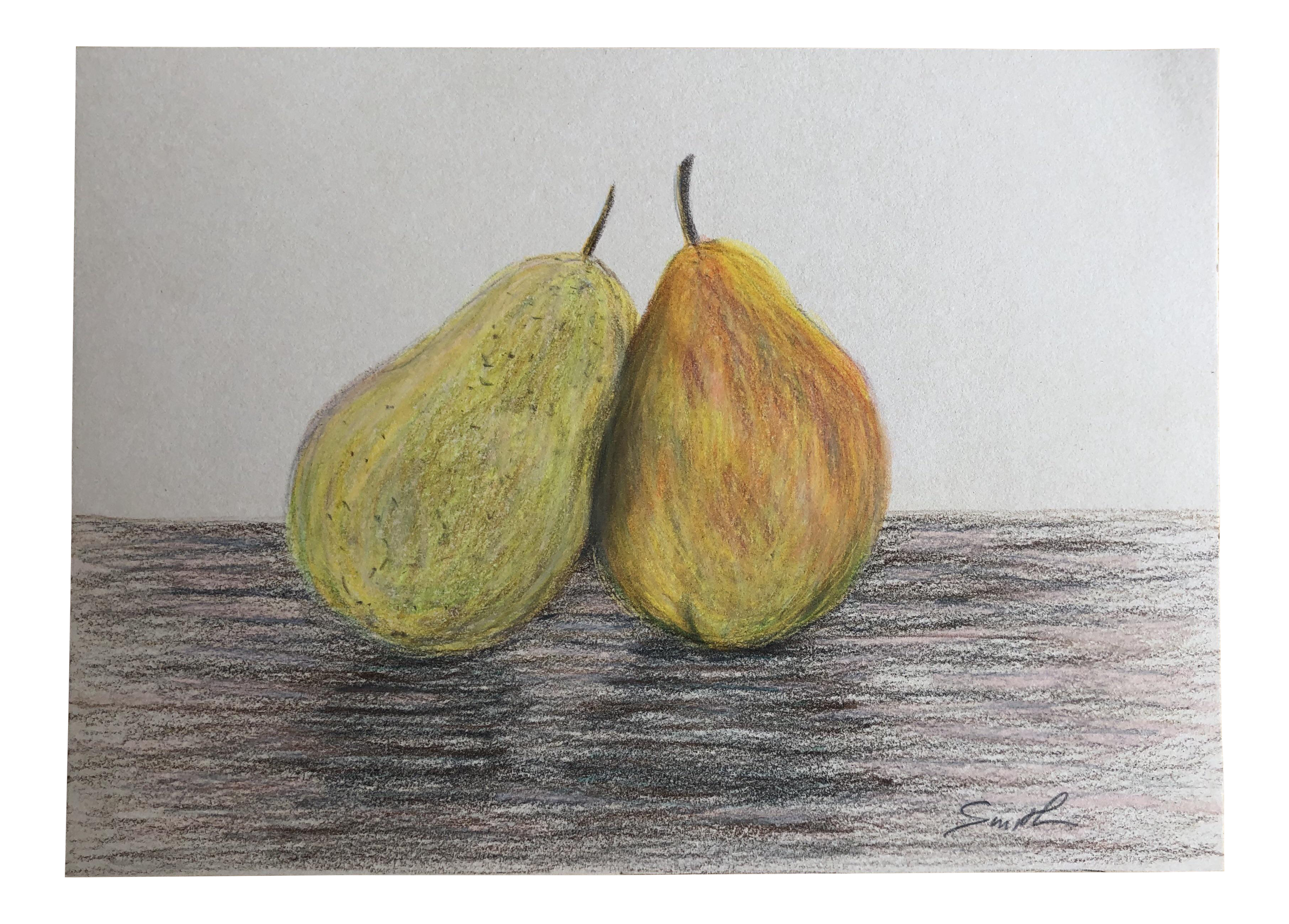 Final Price Pair Of Pears Original Colored Pencil Still Life
