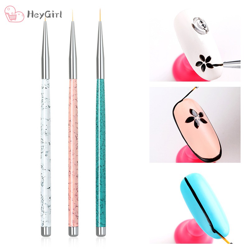 3 Pcs Nail Art Pen Brush Set Metal Handle Drawing Liner Dotting
