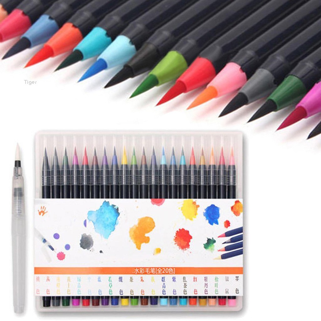 Tiger 20 Colors Watercolor Painting Pen Brushes Artist Sketch