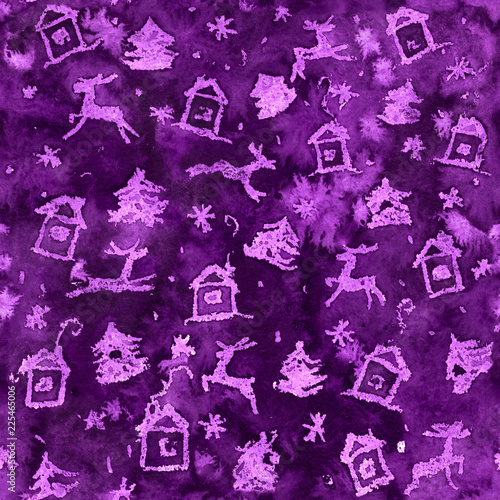 Magic Christmas Blue Or Violet Seamless Background Pattern With