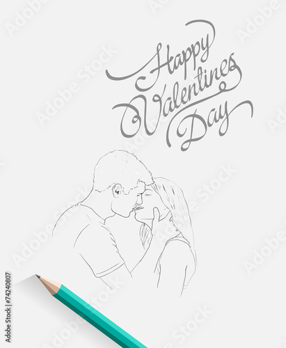 Sketch Of Kissing Couple With Pencil And Message Buy This Stock