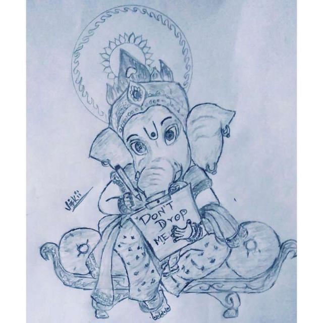 Vinayagar images in pencil drawing.