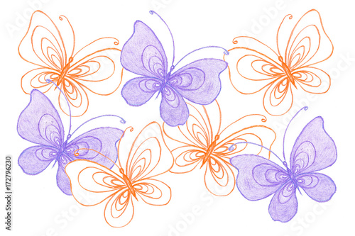 Colorful Butterflies Collage Handmade Pencils Drawing Art Hobby